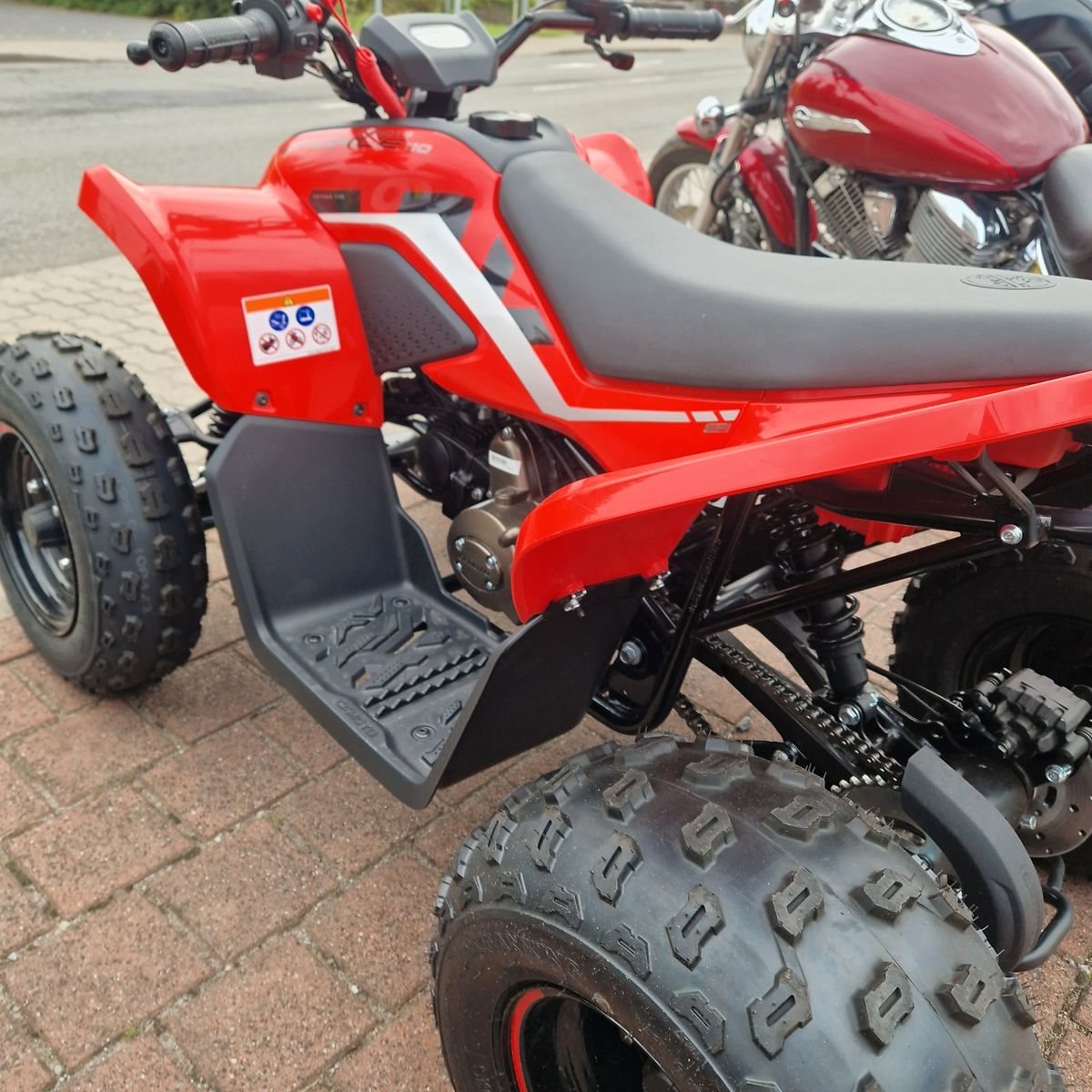 Der 110-cm3-SOHC-Motor ist so abgestimmt, dass er eine gleichmäßige Leistung erzeugt. Elektronische Hilfsmittel helfen Eltern, die Kontrolle zu behalten und bieten Sicherheit auch außerhalb der Sichtweite junger Fahrer. Eine zugängliche Leistung ermöglicht es Kindern, in ihrem eigenen Tempo zu lernen.