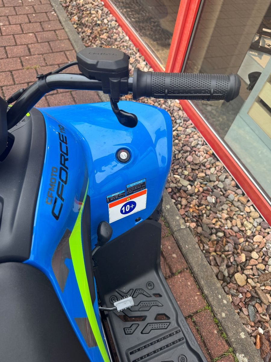 Das kompakte und wendige Offroad-Chassis der CFORCE 110 bringt mehr Spaß in die Jugend-ATV-Klasse. Ausgestattet mit mehreren Leistungsmerkmalen, die auch bei den Top-Modellen zu finden sind, bietet die CFORCE 110 unter anderem einen Doppelquerlenker an der Vorderradaufhängung, Scheibenbremsen und einen Elektrostarter.